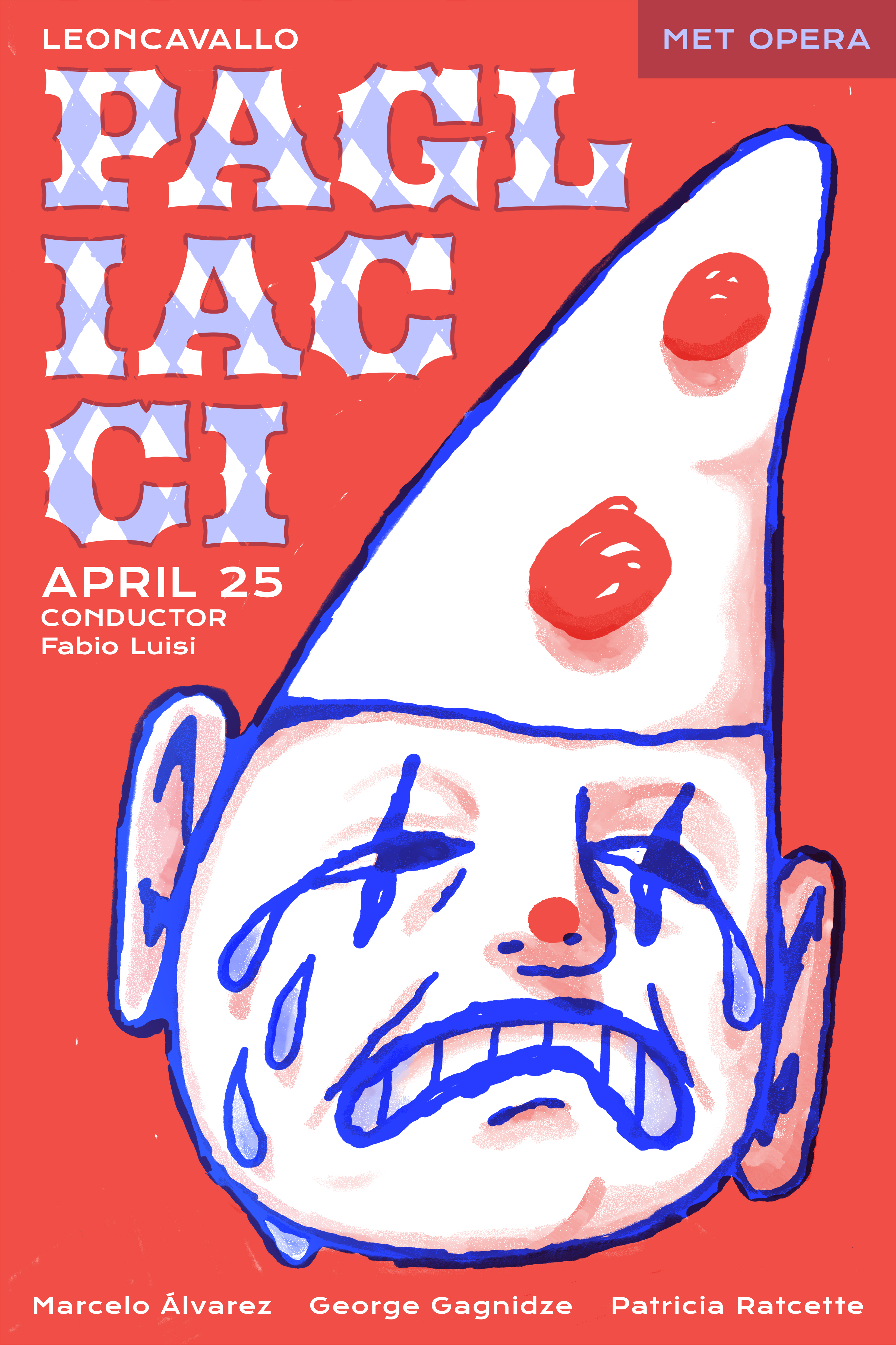 Two posters for the opera, Pagliacci, designed in Kevin Brainard’s Typography class at the School of Visual Arts.